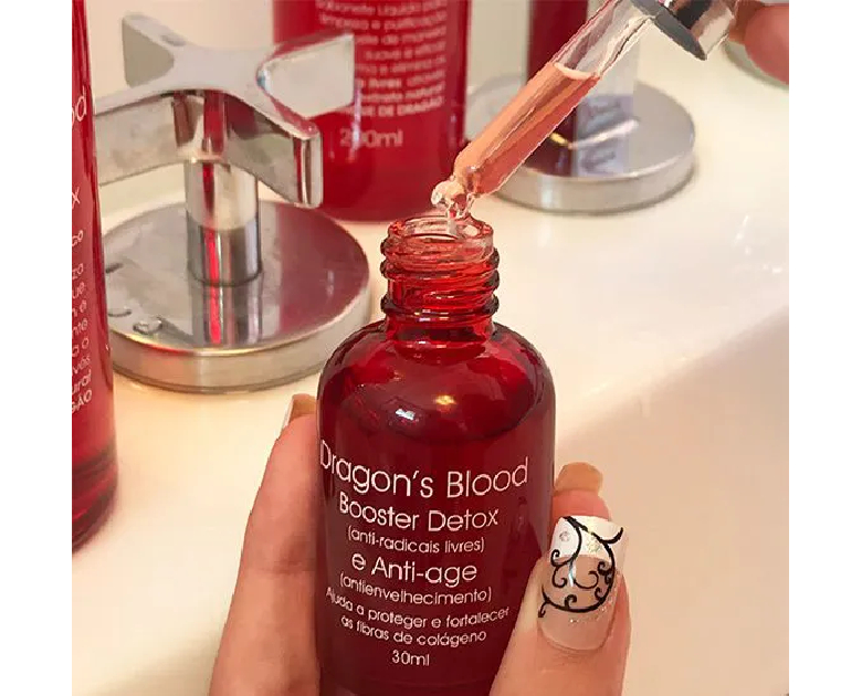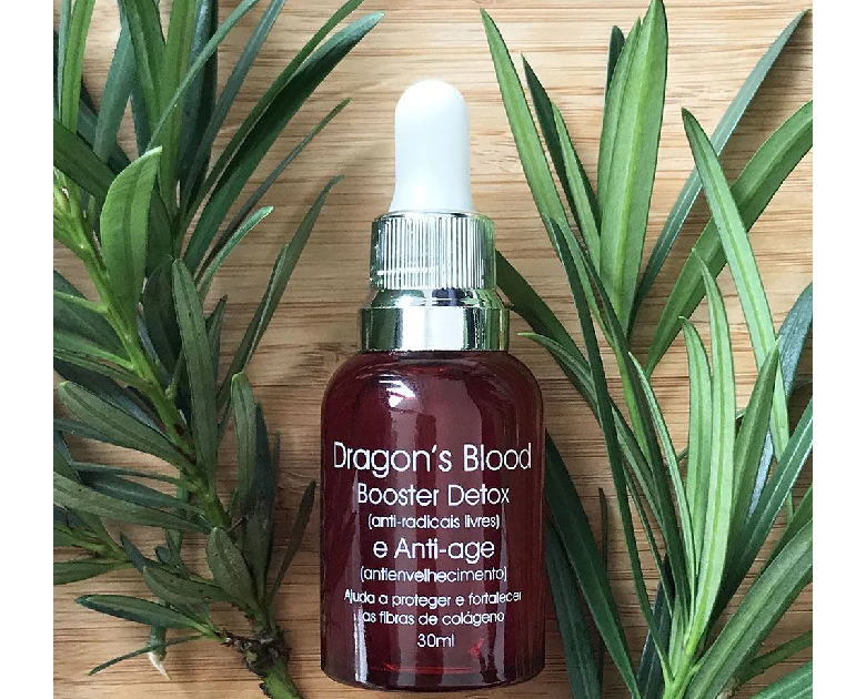Assim, obtemos uma pele mais hidratada, firme e tonificada, graças ao papel do extrato de Sangue de Dragão em proteger e reestruturar as fibras de colágeno.