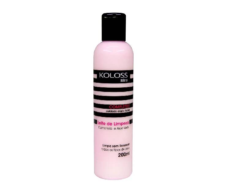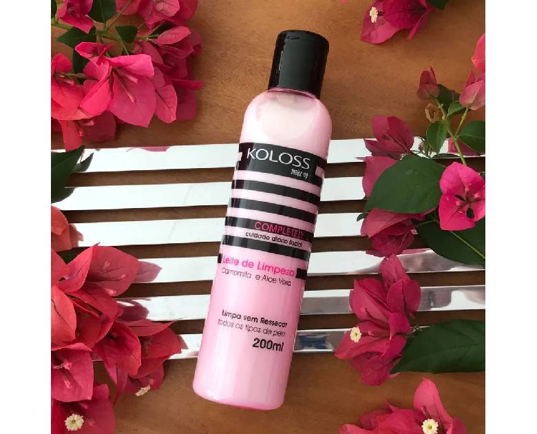 Leite para limpeza do rosto à base de Camomila e Aloe Vera. Recomendado para todas as variedades de pele. Sem ressecamento.