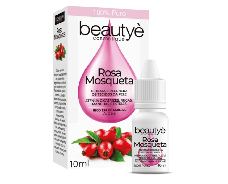 Este óleo, obtido das sementes da planta Rosa canina, também conhecida como Rosa Mosqueta, é repleto de nutrientes vitais que favorecem a regeneração das células e aprimoram a aparência da pele em geral. Este óleo é conhecido pelas suas qualidades hidratantes e emolientes, contribuindo para a suavização da pele e a diminuição da aparência de linhas finas e rugas. Ademais, é um poderoso aliado na luta contra marcas de cicatrizes e estrias, ao estimular a produção de colágeno na pele, o que contribui para o processo de cicatrização. Esses nutrientes trabalham juntos para proporcionar uma pele mais firme, radiante e jovem. Além dos benefícios para a pele, o Óleo Beautye de Rosa Mosqueta também pode ser utilizado nos cabelos, ajudando a nutrir e hidratar os fios, tornando-os mais macios, brilhantes e saudáveis.